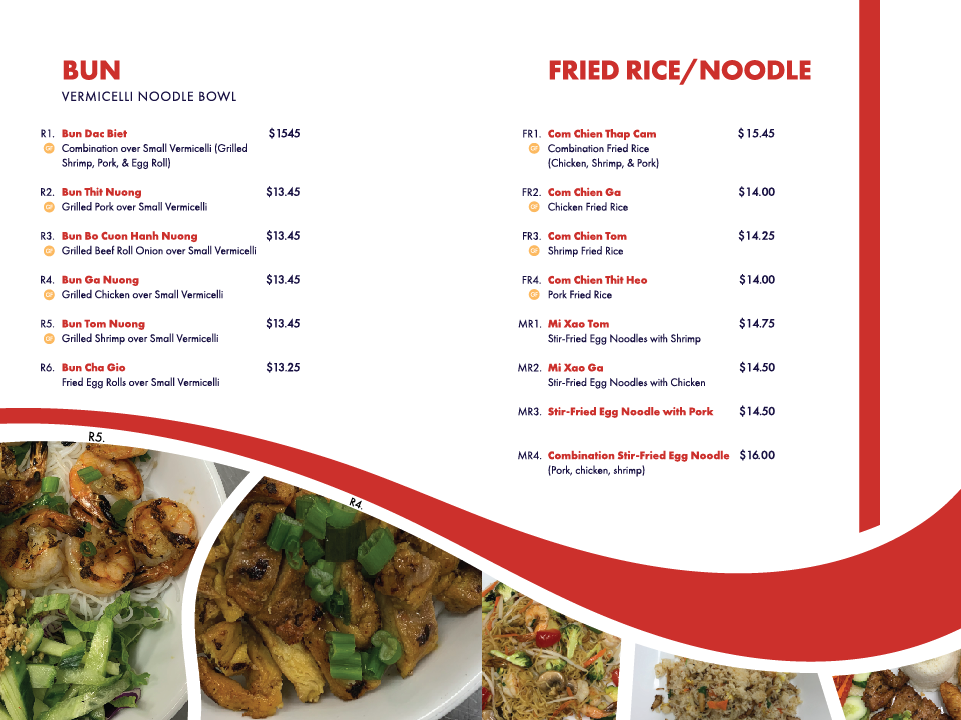 Thin slice pork shoulder fully marinated with Vietnamese traditional flavor grilled open fire paired with 2 fried eggs and an eggroll. Serve with steam rice